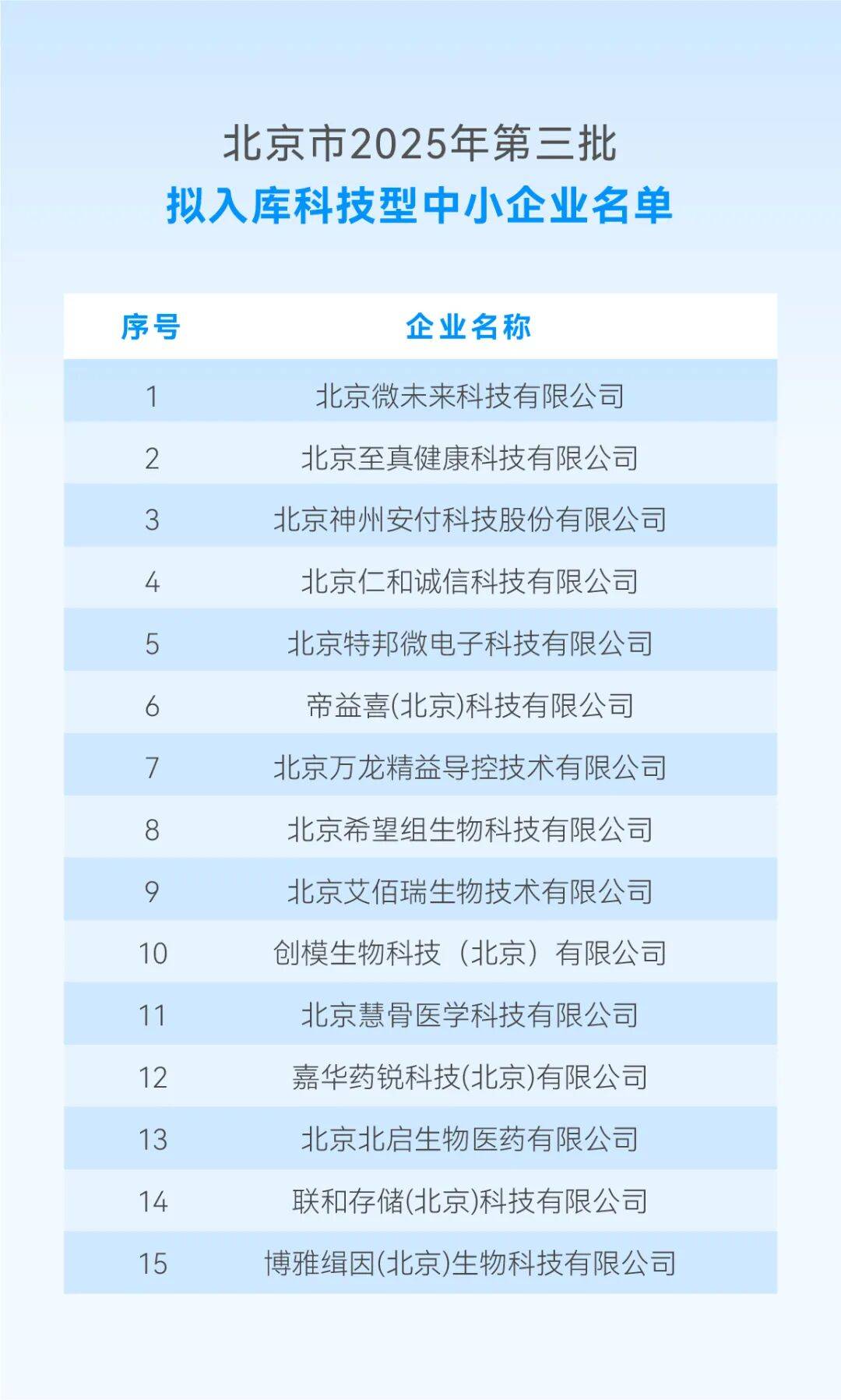 近日,根据《科技型中小企业评价办法》《科技型中小企业评价服务工作指引》和《工业和信息化部中小企业局关于开展2025年度科技型中小企业评价工作的通知》有关规定,北京市科委、中关村管委会对《北京市2025年第三批拟入库科技型中小企业名单》进行了公示,共有微未来、万龙精益、希望组、艾佰瑞、联合存储、博雅辑因等15家昌发展生态企业入围。