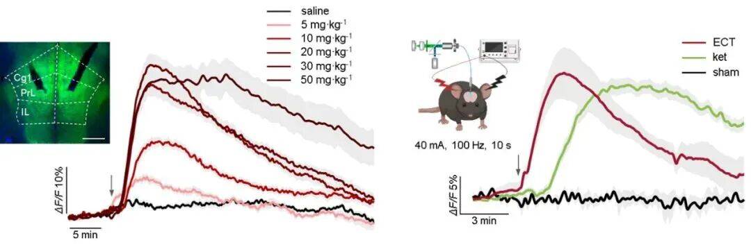 图 1. 氯胺酮(Ketamine)和电休克疗法(ECT)诱导内侧前额叶皮层腺苷激增