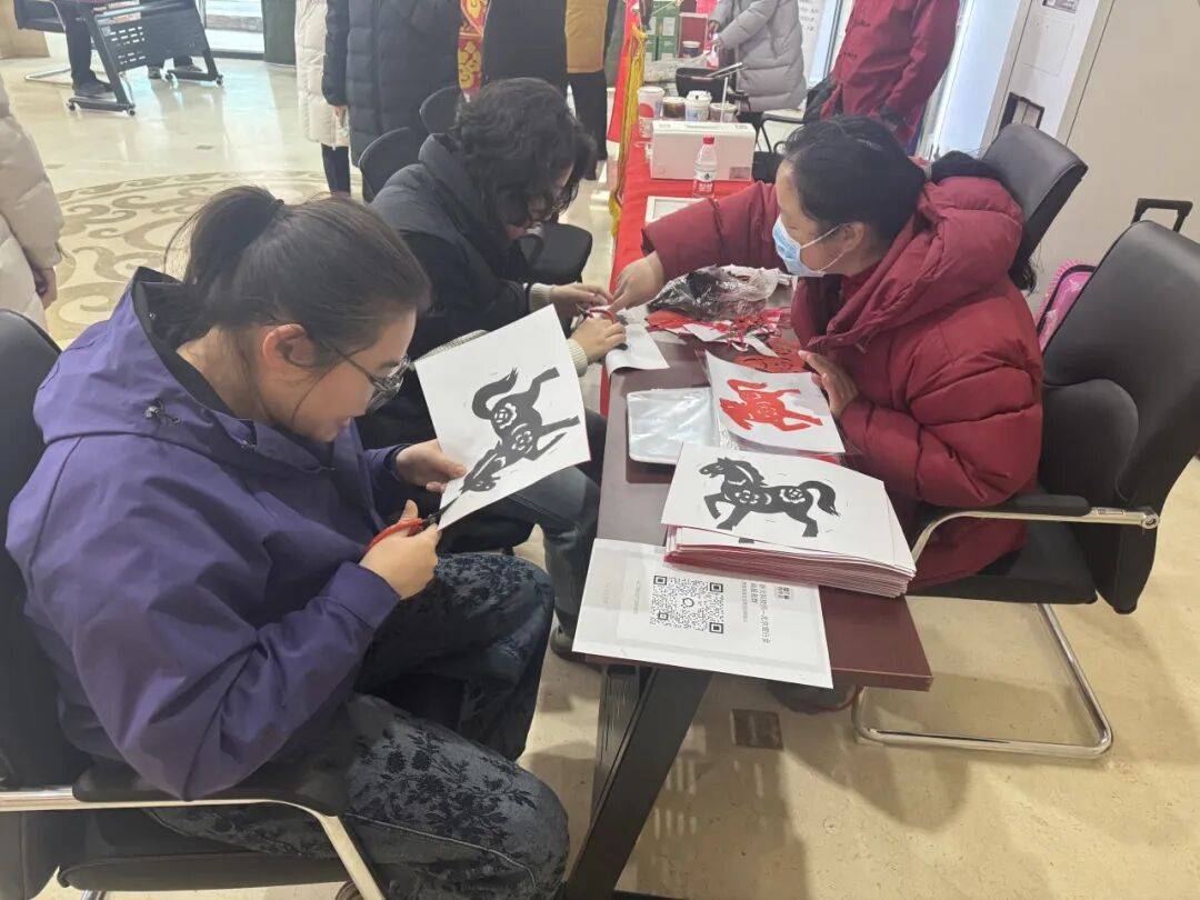“红纸裁春”区,特邀非遗剪纸传承人现场教学,参与者亲手制作生肖窗花;“糖画手作”区由民间艺人指导,用熬制的麦芽糖绘制新春吉祥图案;“迎春送福”区为园区企业送“福”字,营造欢乐祥和的节日氛围;“年货市集”里的各种逛吃,年味儿满满。