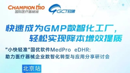 快速成为GMP数智化工厂,轻松实现降本增效提质,“小快轻准"国优软件MedPro eDHR:助力医疗器械企业数智化转型与应用分享研讨会。活动时间:
