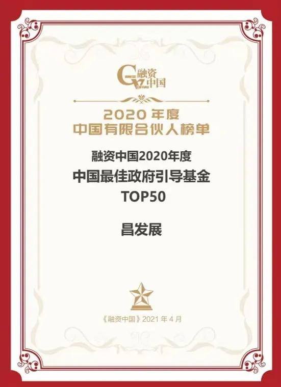 昌发展斩获中国最佳政府引导基金排行榜TOP50。