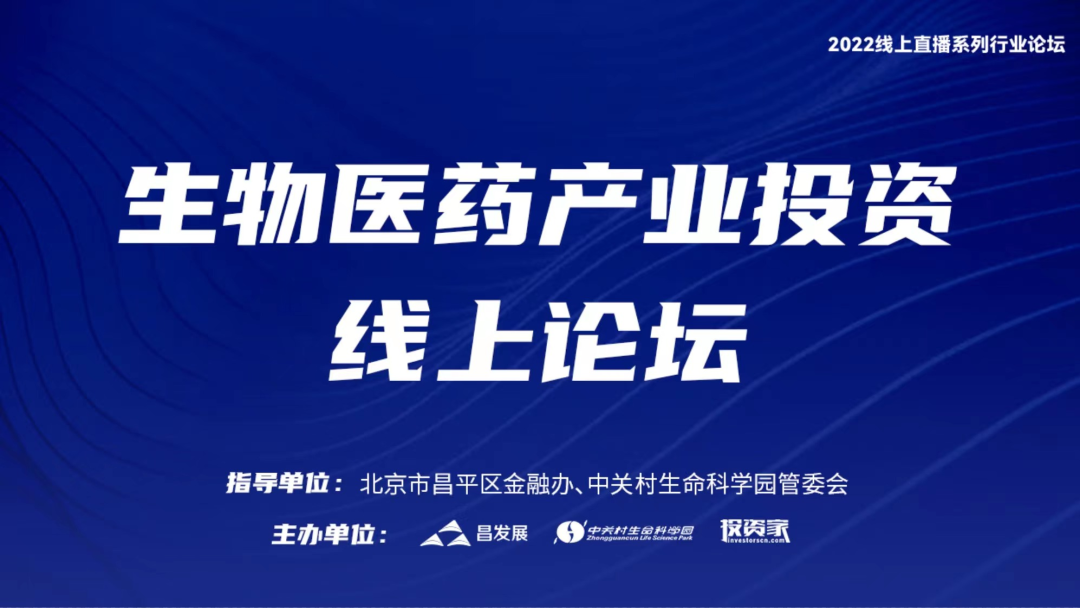 昌发展、中关村生命科学园和投资家网联合主办 “2022线上直播系列行业论坛·生物医药产业投资线上论坛”