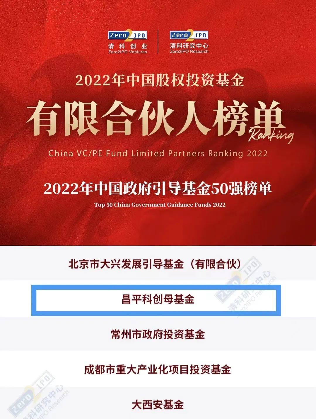 由清科创业、投资界主办的第十六届中国基金合伙人峰会暨2022扬州股权投资峰会在扬州举办。昌发展运营管理的昌平科技产业母基金荣登榜单,获评「2022年中国政府引导基金50强」。