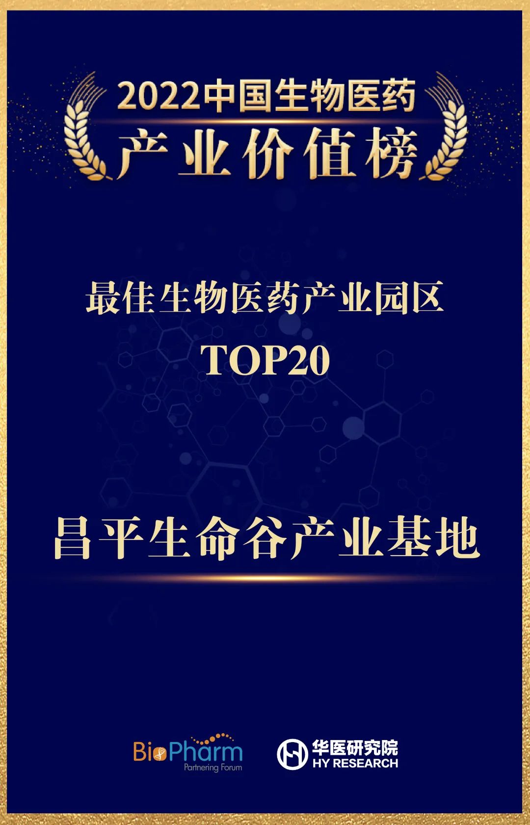 2022第六届中国生物医药创新合作大会(BIO-PHARM2022)在苏州举办,大会上2022中国生物医药产业价值榜发布,CHAMPIONBIO昌平生命谷产业基地入选最佳生物医药产业园区TOP20。