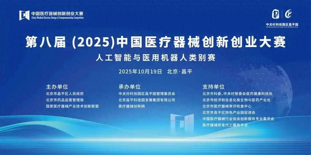 2025年10月19日,第八届(2025)中国医疗器械创新创业大赛人工智能与医用机器人类别赛将在北京昌平区开赛!