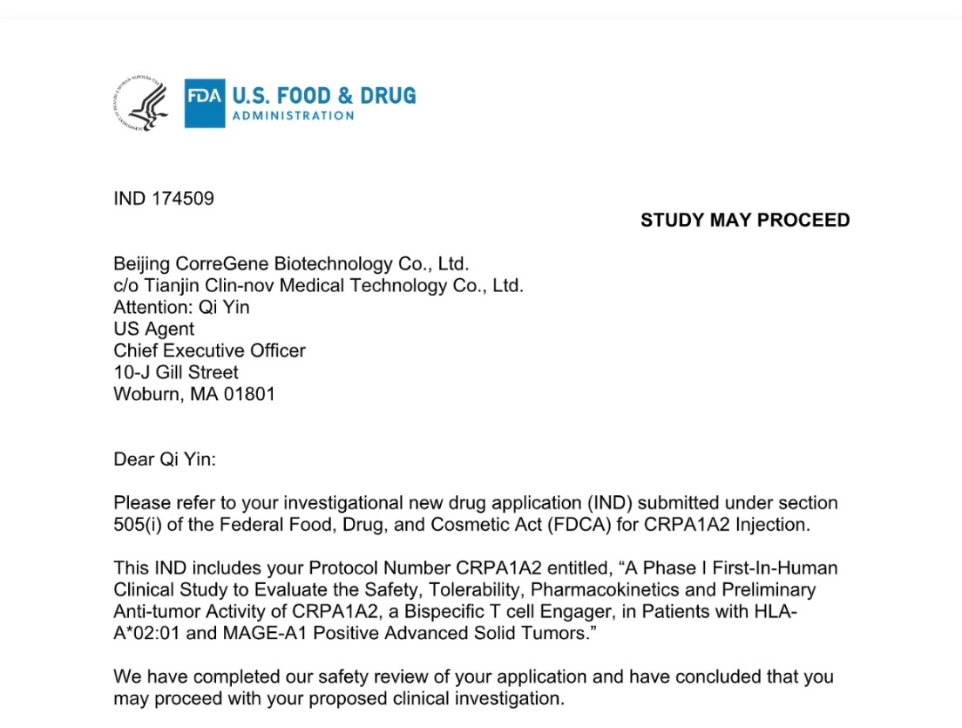 2025年12月5日,北京可瑞生物科技有限公司(以下简称“可瑞生物”)自主研发的TCR-TCE(T细胞受体-T细胞衔接器)药物CRPA1A2注射液正式获得美国食品药品监督管理局(FDA)的新药临床试验(IND)许可,这一里程碑事件不仅标志着全球首款靶向MAGE-A1阳性且HLA-A*02:01阳性的晚期实体瘤的TCR-TCE药物正式迈入国际临床研究阶段,更创下中国企业首个进入临床阶段 TCR 蛋白药物的纪录,彰显了中国创新药企在精准肿瘤治疗领域的全球竞争力。