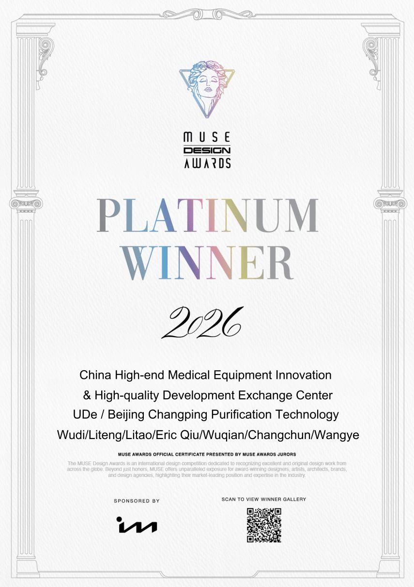 近日,国际设计领域权威赛事——2026年缪斯设计奖(MUSE Design Awards)评选结果正式揭晓,北京昌发展净化科技有限公司(以下简称“昌净化”)凭借其在昌发展国际医疗器械城东区打造的“中国高端医疗装备创新与高质量发展交流中心”(以下简称“交流中心”)设计作品,脱颖而出斩获铂金奖殊荣,彰显了昌净化公司设计与施工一体化管理的综合水平,也成为昌发展集团产业生态布局与创新服务能力的又一重要佐证。