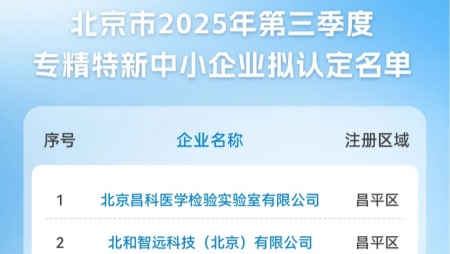 - 昌发展十家生态企业入选北京市2025年第三季度“专精特新”中小企业拟认定名单
